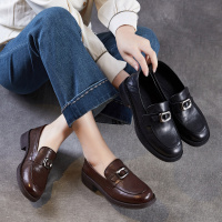 复古气质风真皮乐福鞋秋季新款单鞋厚底英伦增高圆头四季皮鞋