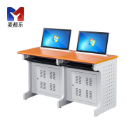创世人 翻转电脑桌 单双人带主机显示器嵌入式电脑桌 多媒体课桌 学校微机室电脑桌