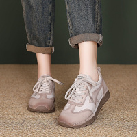 SUNTEK厚底透气板鞋女2023新款运动休闲鞋增高系带低帮圆头小白鞋女