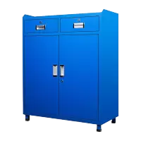 全简家具工具柜重型车间二斗双开门式五金柜铁皮储物柜多功能器材柜矮柜蓝色加厚款