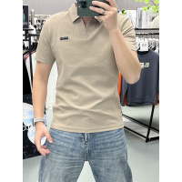 专柜品牌夏季桑蚕丝T恤男士短袖纯色翻领休闲POLO衫 潮