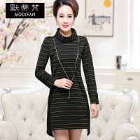 2017秋装新款女中长款大码长袖打底裙显瘦微胖mm遮肚连衣裙减龄