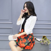 2017春装木耳边网纱打底裙+毛衣背心两件套配腰带
