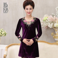 中老年女装春装妈妈装秋装中长款连衣裙中年人妇女丝绒打底裙子