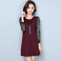 2017春装新款女连衣裙韩版时尚小香风中长款鱼尾蕾丝打底裙8179