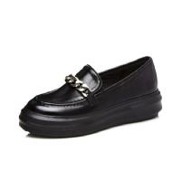 班尔(BANER)学院风真皮轻便型加厚软底牛皮休闲鞋女春秋季单鞋低帮鞋链条黑色