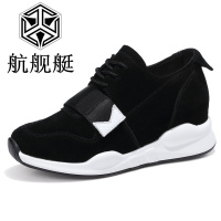 秋季韩版潮流女士真皮时尚百搭休闲鞋反绒牛皮女厚底增高5CM潮鞋子