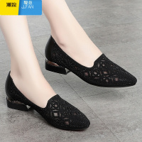 聚范意尓康凉鞋女低跟软底夏季粗跟中跟网纱镂空单鞋时尚妈妈皮鞋