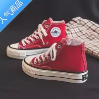 SUNTEK红色厚底高帮帆布鞋女本命年百搭女鞋秋春季新款鞋子潮春秋女板鞋
