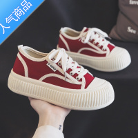 SUNTEK夏季红色厚底饼干帆布鞋女鞋2023新款夏款大头面包板鞋布鞋小白鞋