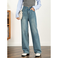 大牛创意口袋20266春新牛仔裤女直筒裤高腰拖地阔腿裤垂感