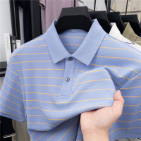 2026夏季新款短袖polo衫男翻领条纹休闲冰丝透气弹力舒适男士T恤