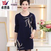 卓勝基妈妈装春季针织连衣裙中老年人女装羊毛打底衫中长款中年女式毛衣