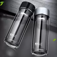 晶立方 双层高硼硅玻璃杯水杯304钢芯镜面内盖可定制logo杯子