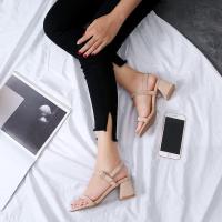 SUNTEK薏尓康凉鞋女2023夏中跟凉拖鞋外穿褶皱珠子水晶跟仙女法式小众