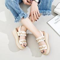 SUNTEK意尓康圆头超软厚底露趾凉鞋女2023夏休闲百搭舒适粗跟孕妇鞋
