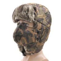 运动户外帽子男女士护耳雷锋帽冬天骑车厚防风老人保暖口罩棉帽滑雪帽迷彩卡其可调节(一般人都可