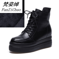 梵姿绰冬季厚底短靴内增高2017新款韩版机车靴大棉松糕马丁靴休闲女靴子黑色二棉