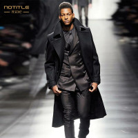 英伦绅士大翻领毛呢大衣商务休闲男士长款羊绒羊毛呢风衣外套冬厚黑色商务绅士