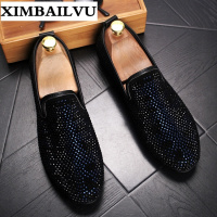 品牌时尚潮男发型师休闲男鞋水钻走秀时装鞋一脚蹬套脚皮鞋内增高乐福鞋豆豆鞋型男驾车鞋