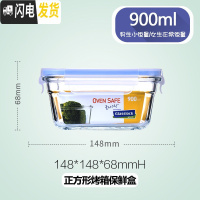 三维工匠钢化玻璃饭盒男女微波炉加热上班族保鲜带盖密封便当碗 微烤两用正方形1650