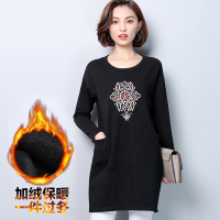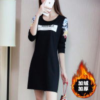2017加肥加大码冬季打底连衣裙胖妹妹加绒秋冬新款绣花中长款裙子