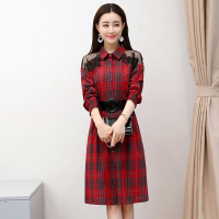 2018年春季长袖中款连衣裙修身显瘦韩版时尚格子裙