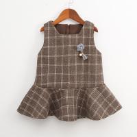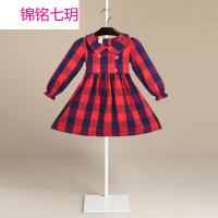 锦铭七玥外贸童装2018新款翻领英伦风长袖格子裙纯棉女童连衣裙潮批发代理