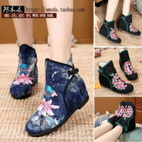 春秋新款老北京布鞋民族风绣花靴子中国风女绣花鞋子短筒单靴布靴