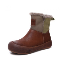 加绒真皮雪地靴冬季新款魔术贴休闲保暖单鞋复古女鞋百搭棉鞋