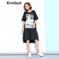 Kruidvat欧美女装贴钻人物图案中长款连衣裙子 黑色(付款后7天发货) 均码(人像长T