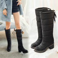 欧美冬季防水保暖高筒靴加厚雪地靴女冬棉靴方跟厚底棉鞋圆头套筒
