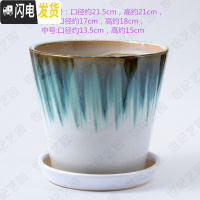三维工匠陶瓷花盆欧式特大号家用多肉室内简约绿萝客厅吊兰带托盘 浅绿色101流釉扫绿色 中等花盆容器