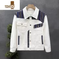 YANXU高品质拼接白色牛仔外套男款痞帅潮牌上衣2023新款男士牛仔衣