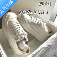 SUNTEK羊皮版~系带圆头厚底增高休闲小白鞋女板鞋时尚松糕鞋饼干鞋
