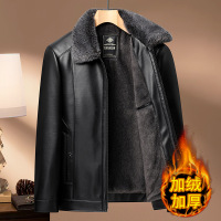 中年爸爸皮衣男翻毛领加绒加厚皮夹克秋冬季中老年保暖冬装外套