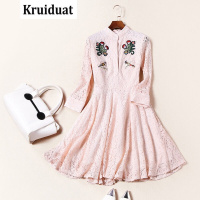 Kruidvat2017春装新款女装欧美时尚立领绣花七分袖修身蕾丝公主裙72125B080