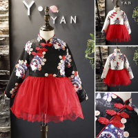 娉语女童旗袍连衣裙新年装2018冬季民族风加厚加绒裙子儿童长袖公主裙