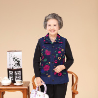 新品秋装妈妈装马夹加绒灯芯绒钮扣开衫无袖中老年女装奶奶装马甲