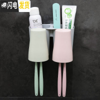 三维工匠新款2/3/4口 吸壁式牙刷架洗漱套装壁挂杯架漱口杯刷牙杯浴室套装 竹纤维两口+挤牙器