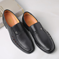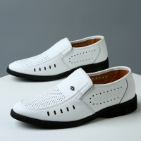 男鞋夏季透气镂空西装鞋子男士白色真皮皮凉鞋男商务套脚正装皮鞋