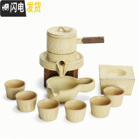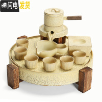 三维工匠石磨茶具套装家用创意陶瓷茶壶茶盘功夫茶杯半自动懒人泡茶器 石磨茶具-大麦色