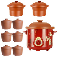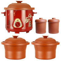 隔水电炖锅一锅两胆陶瓷电炖盅电砂锅慢炖锅煲汤锅煮粥锅电瓦罐煨汤锅熬汤锅电炖煲电汤锅5升红外壳+2个红内胆+6炖盅