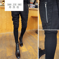 丹杰仕2017港仔文艺范丹杰仕权志龙同款休闲裤男秋冬季新款哈伦小脚裤韩版修身靴裤潮黑色