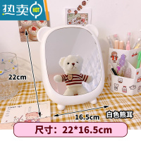 敬平可爱镜子家用小型办公室便携宿舍学生台式桌面化妆镜ins风梳妆镜 立体边框台面镜*白色熊耳便携式用镜