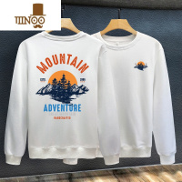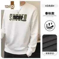 YANXU白色印花圆领卫衣男装新款潮牌字母纯色长袖宽松休闲套头上衣