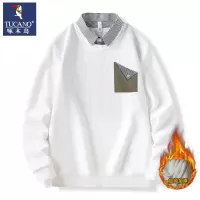 啄木鸟男士厚T恤新款2025款春秋重磅白色衬衫领假两件潮牌打底衫男