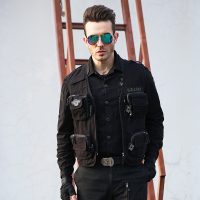 锦铭七玥春季工装军装男装长袖衬衫商务衬衣休闲按扣韩版棉潮军衣风军旅