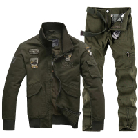 军迷风耐磨作训服 绣标休闲空降师工装服潮男野外套装服