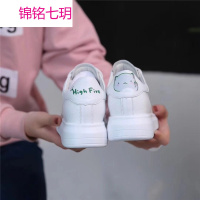 温州2018春季新款平底小白鞋卡通印花小坡跟系带厚底休闲鞋